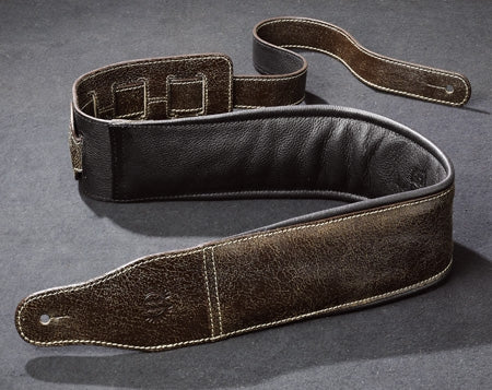 This strap for heavy instruments out of buffalo vintage crackled leather comes with the classic length adjustment.